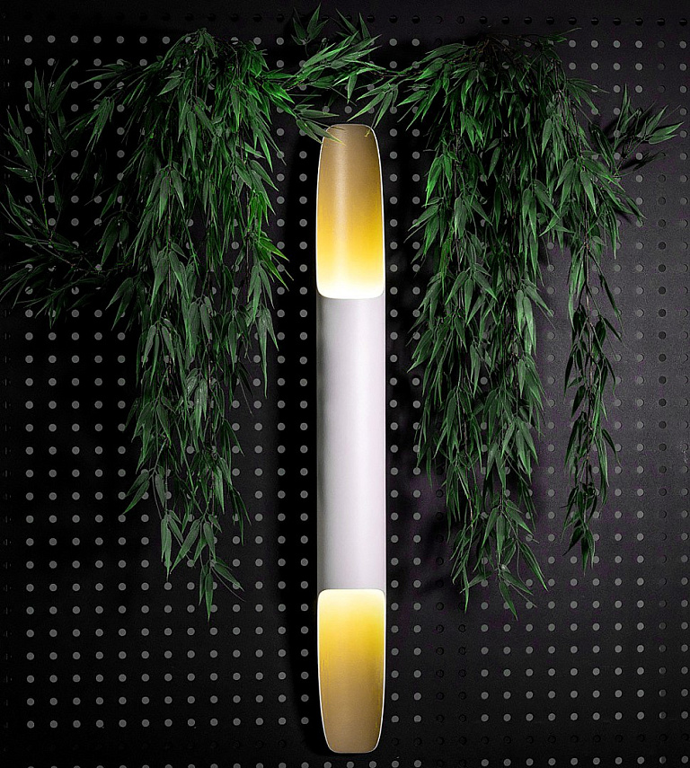 Источником света служат лампы E-14. Для объединения нескольких светильников может быть изготовлена общая чашечка из металла. Срез может выполняться под углом. Диаметр трубки 85мм. Красятся в один цвет, на изображениях внутренняя сторона может казаться другого цвета из-за света лампы. Под заказ возможна покраска в 2 цвета.