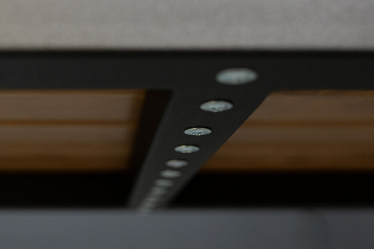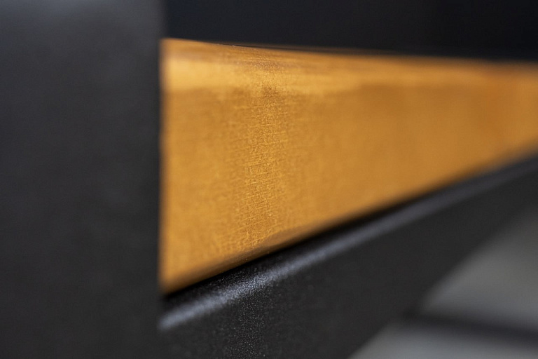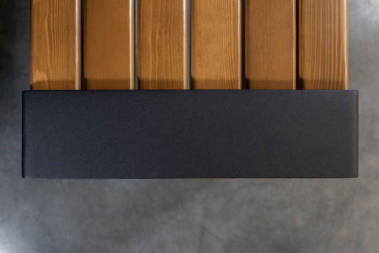 Эстетика: сочетание черного металла и дуба делает лавочку универсальной для любого пространства.