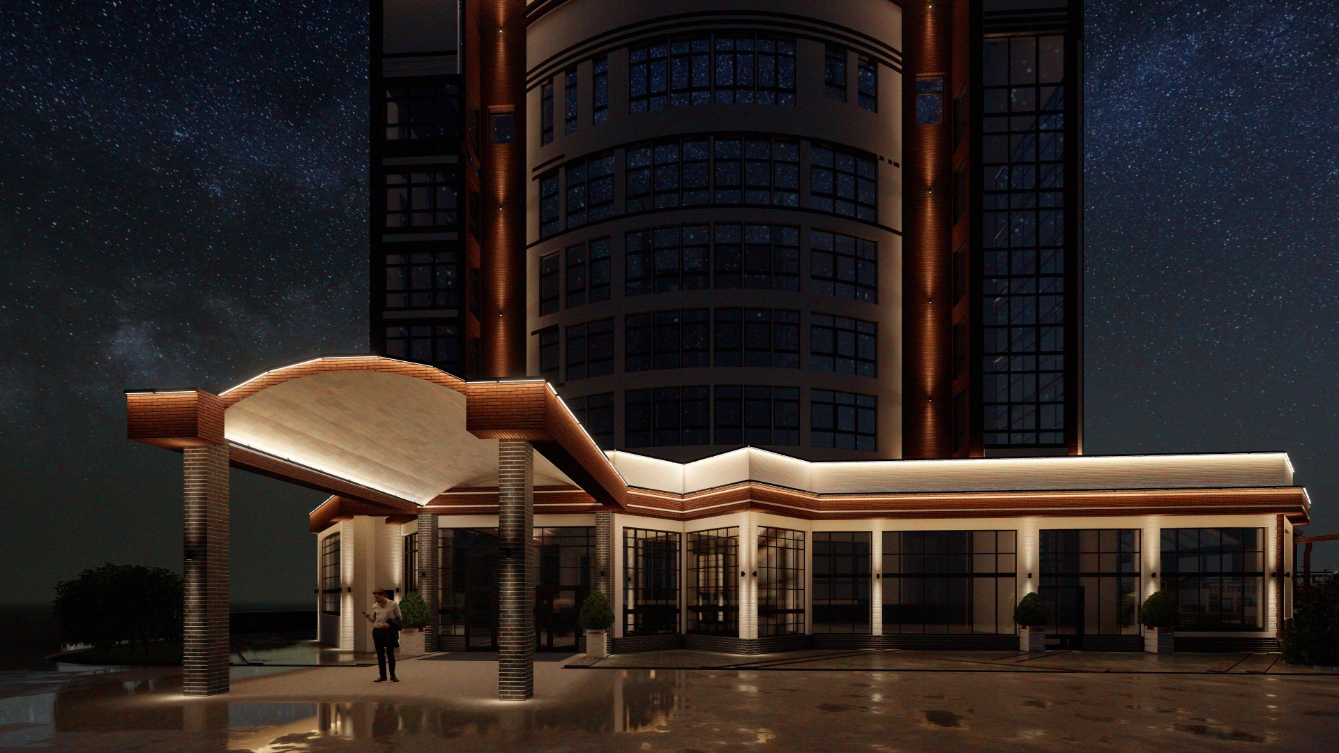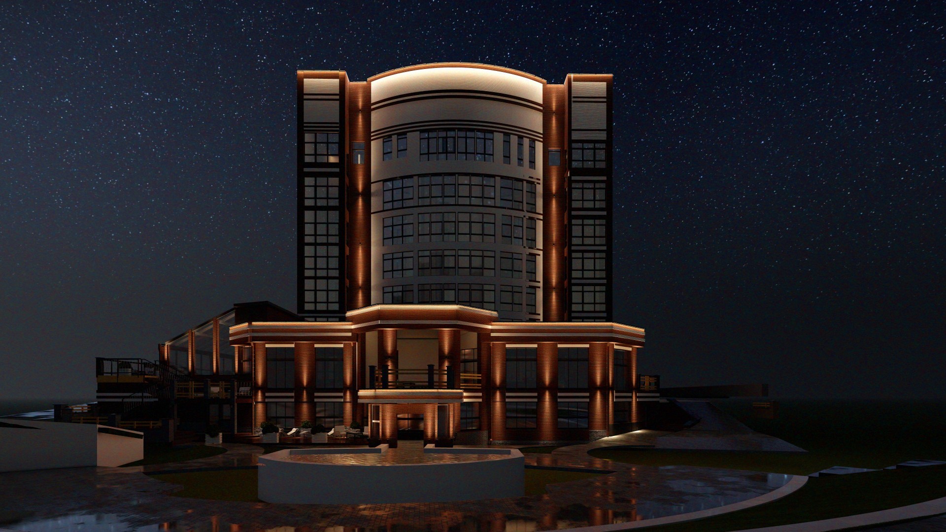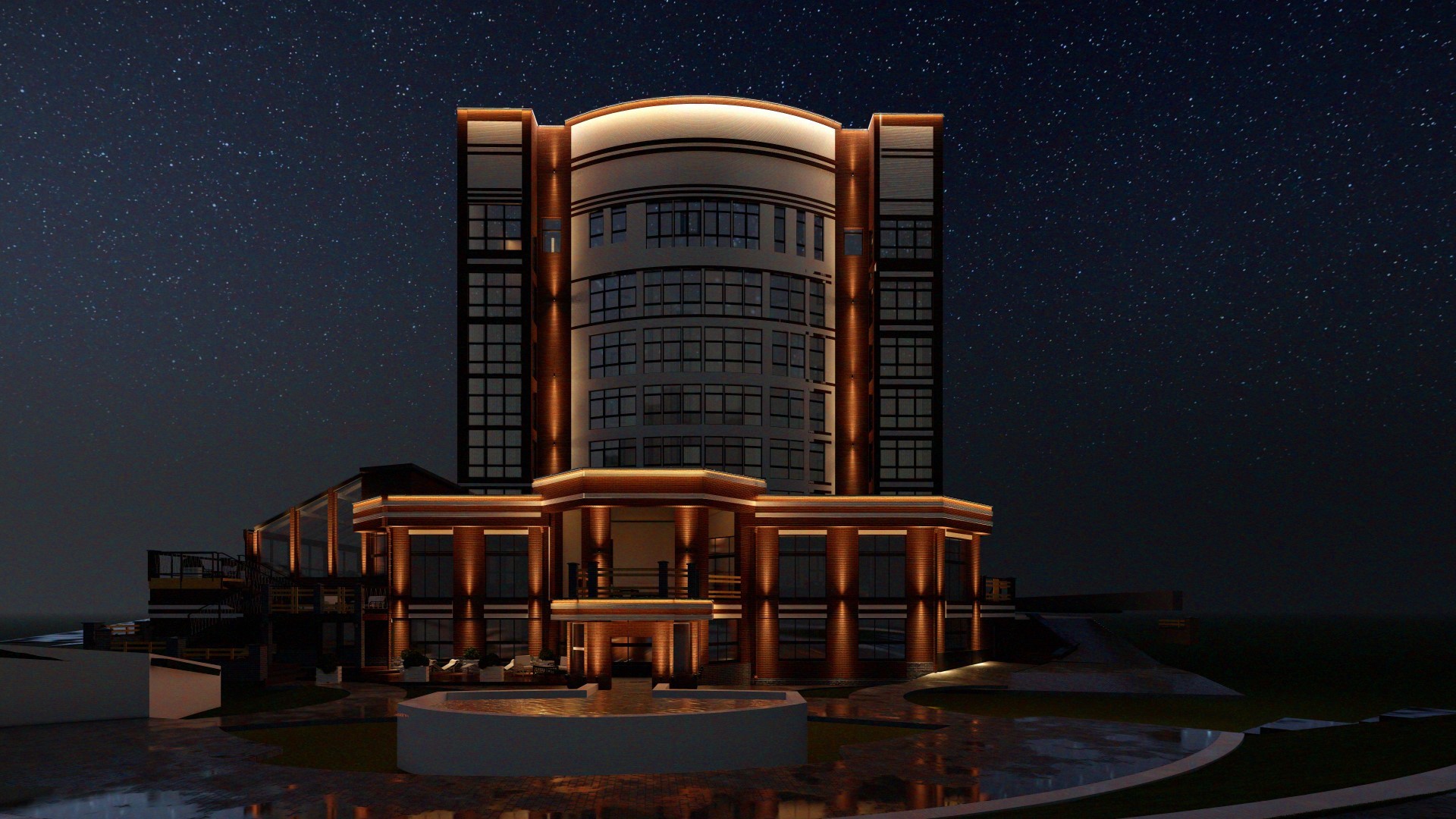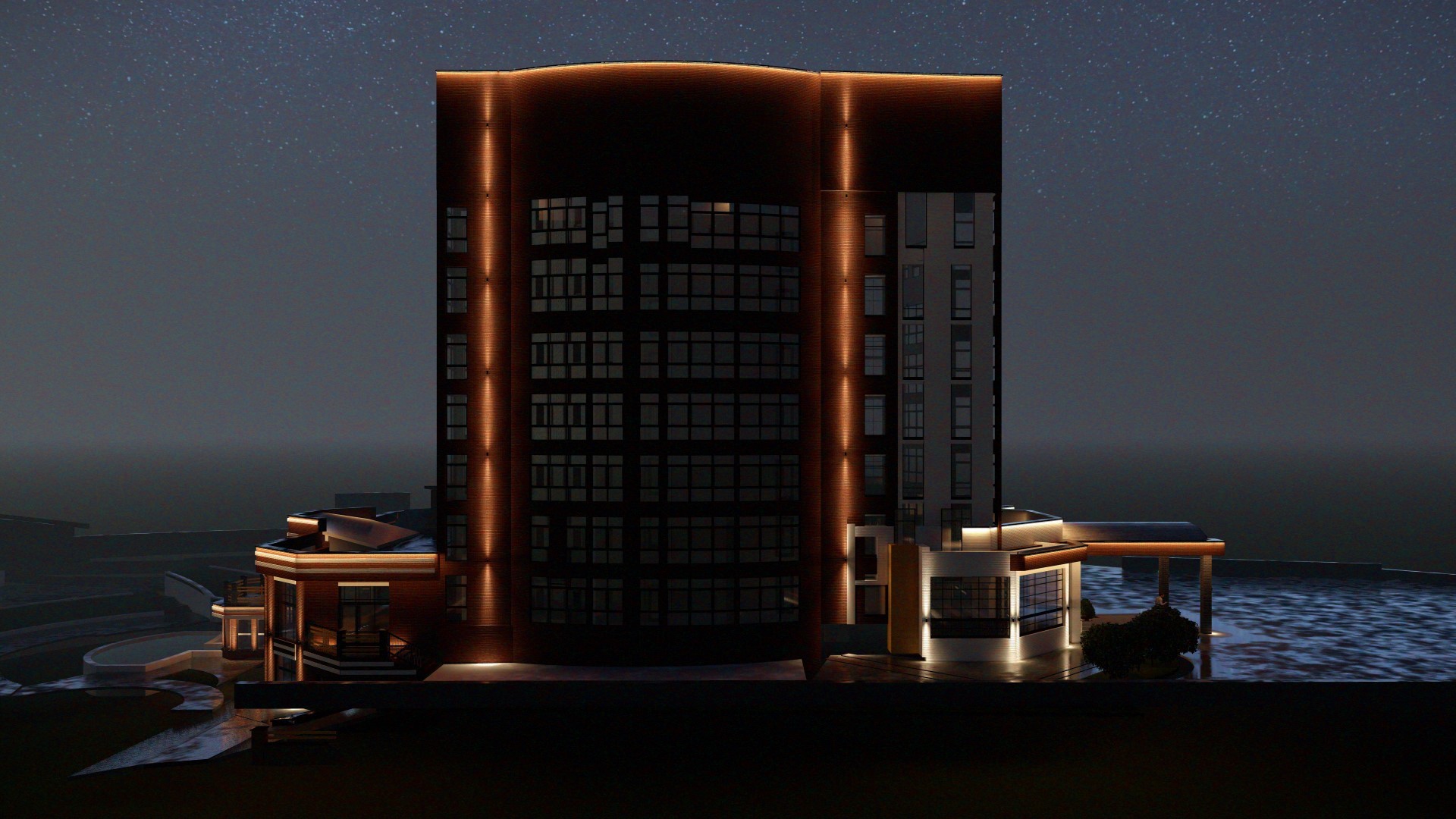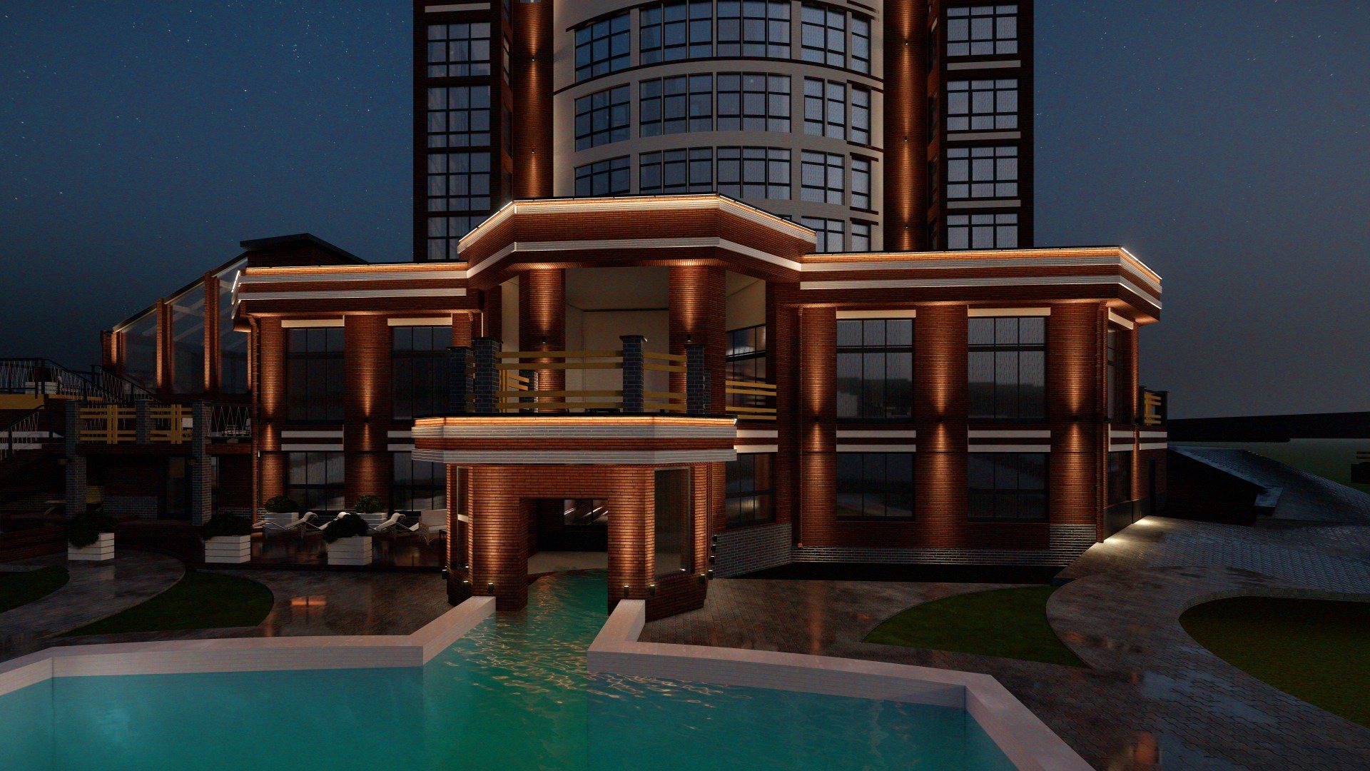 Освещение гостиницы в г. Домбай