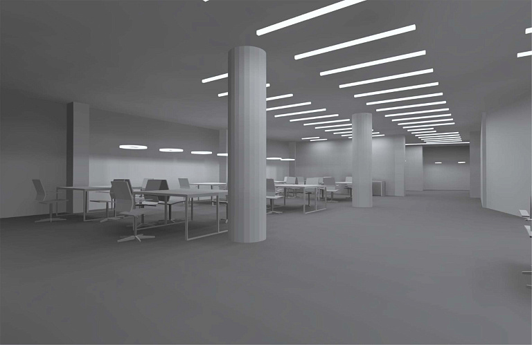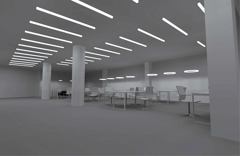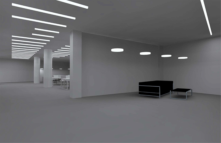Серии светильников для освещения больших площадей коммерческого и офисного пространства