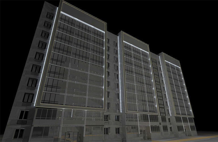 Подсветка многоквартирного дома по адресу: Алтайский край, г. Барнаул, улица Союза Республик,11